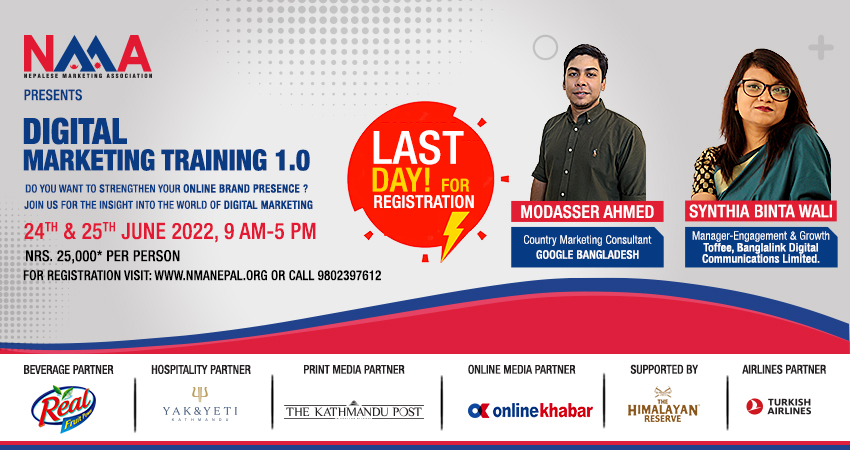 NMA- Carrying a unified voice to help marketing professionals all over the country to attain the best practice, NMA (Nepalese Marketing Association) has been registered as a non-profit organization to aid the marketing arena of Nepal.